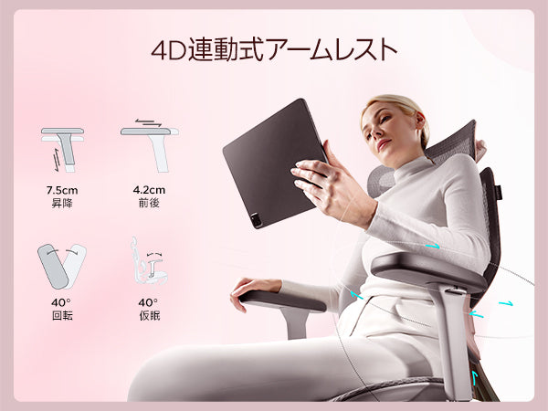 HBADA E3 Pro ピンク人間工学オフィスチェア(フットレスト付き)